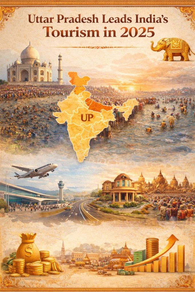 Record Domestic and International Visitors Uttar Pradesh (UP) led India’s domestic tourism in 2025, welcoming over 1.37 billion domestic visitors, according to the Union Ministry of Tourism. The state also ranked fourth in foreign arrivals, attracting around 366,000 international tourists. Officials credit this growth to the development of religious, cultural, and heritage sites, along with